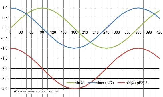 3) Сдвинули на -2 (вниз) и получили нужный график.