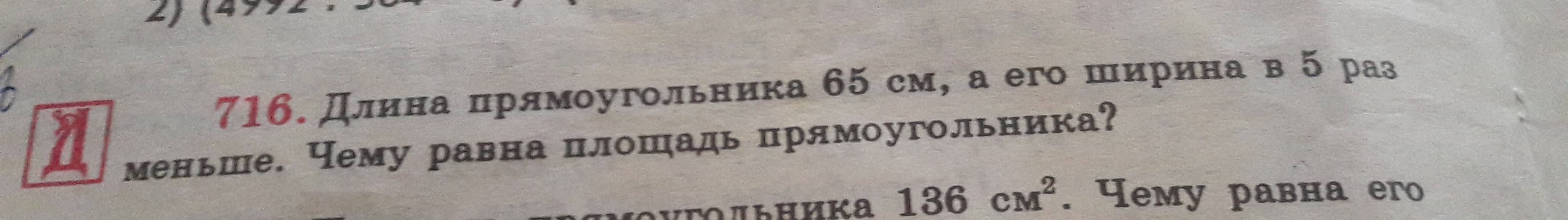 65 :5=13 см. - ширина. S = a • b 65х13=845 см. -S Ответ 845см.
