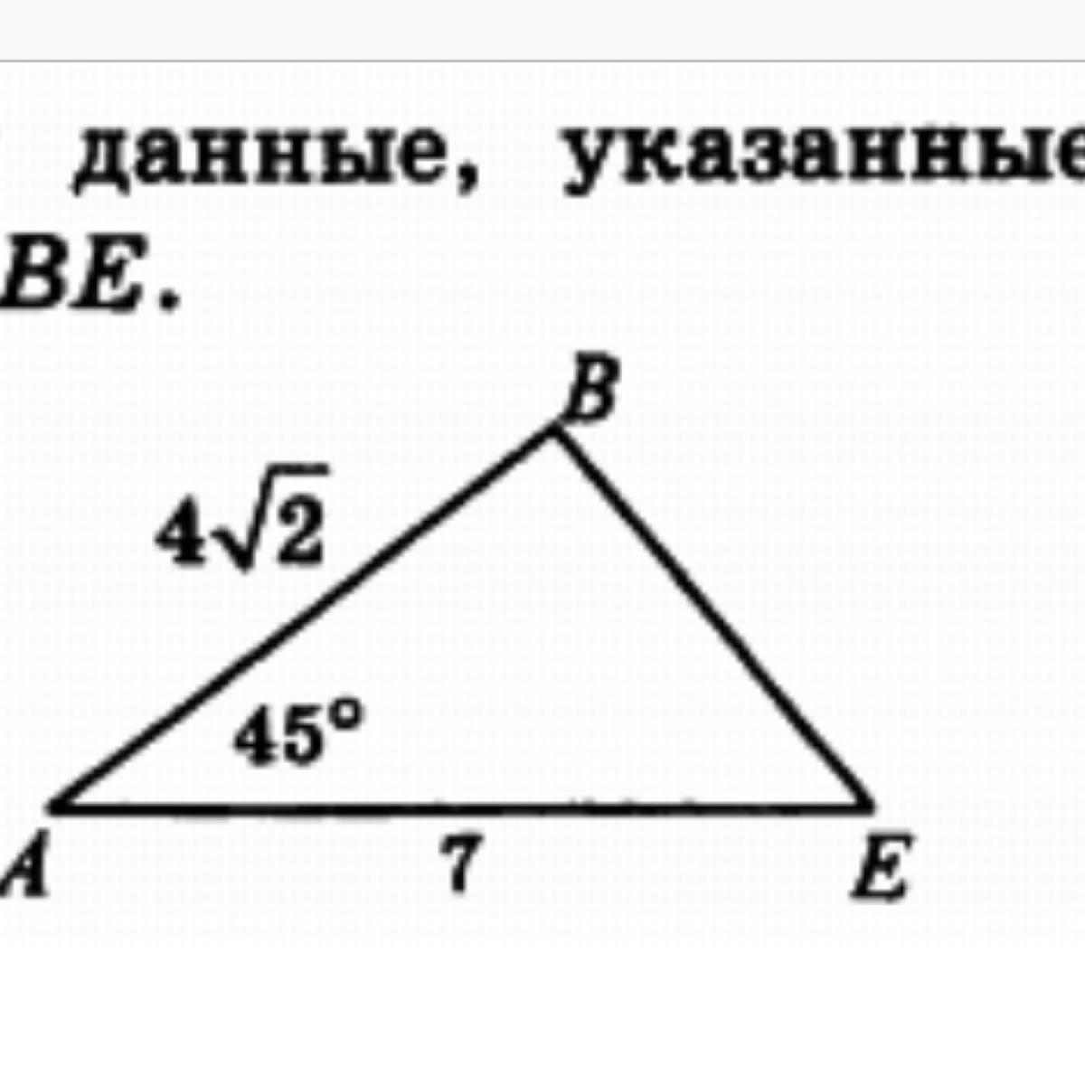 Способ 1. Опустим перпендикуляр ВН на сторону АЕ. Треугольник АВН прямоугольный, угол А=45°, ВН=АВ•sin45°-4√2•√2/2=4. Сумма острых углов прямоугольного треугольника 90°, следовательно, угол АВН=45°. Два угла треугольника при АВ равны, - ∆ АВН равнобедренный, АН=ВН. Тогда в прямоугольном треугольнике ВЕН катет ЕН=АЕ-АН=7-4=3. Отношение катетов 3:4 указывает на то, что ∆ ВНЕ - египетский и ВЕ=5, или вычислив по т.Пифагора получим ВЕ=5.