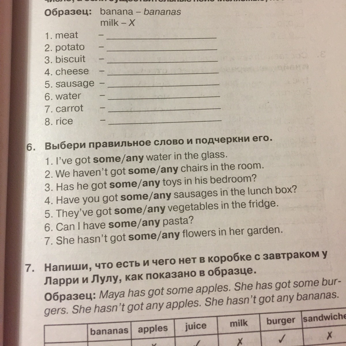 1 some, 2 any 3 some, 4some, 5 some, 6 some, 7 any