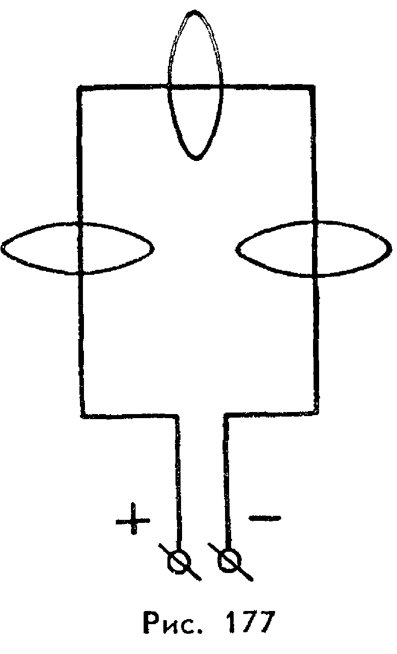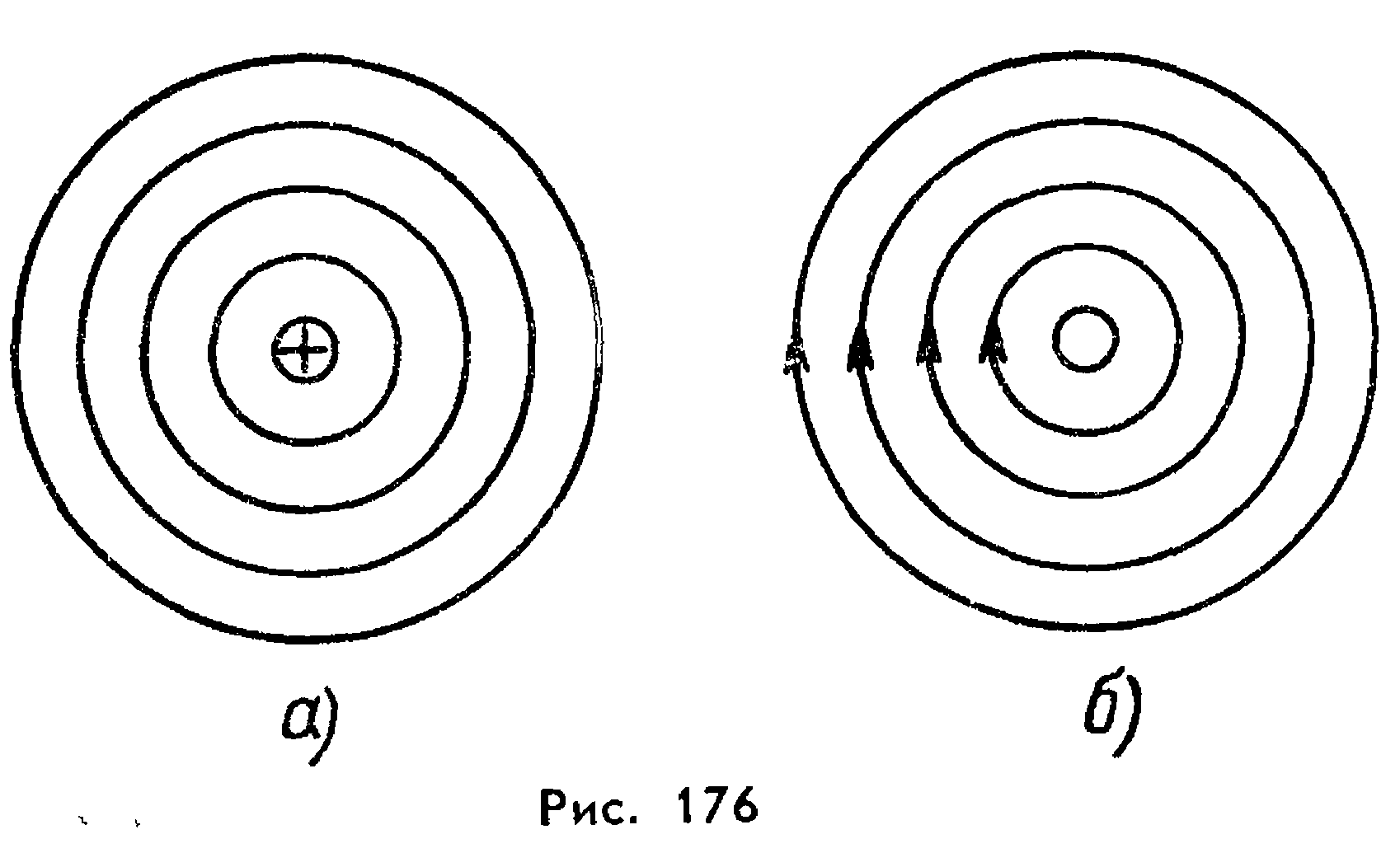 б) В каком направлении течет ток в проводе (рис. 176, б)?