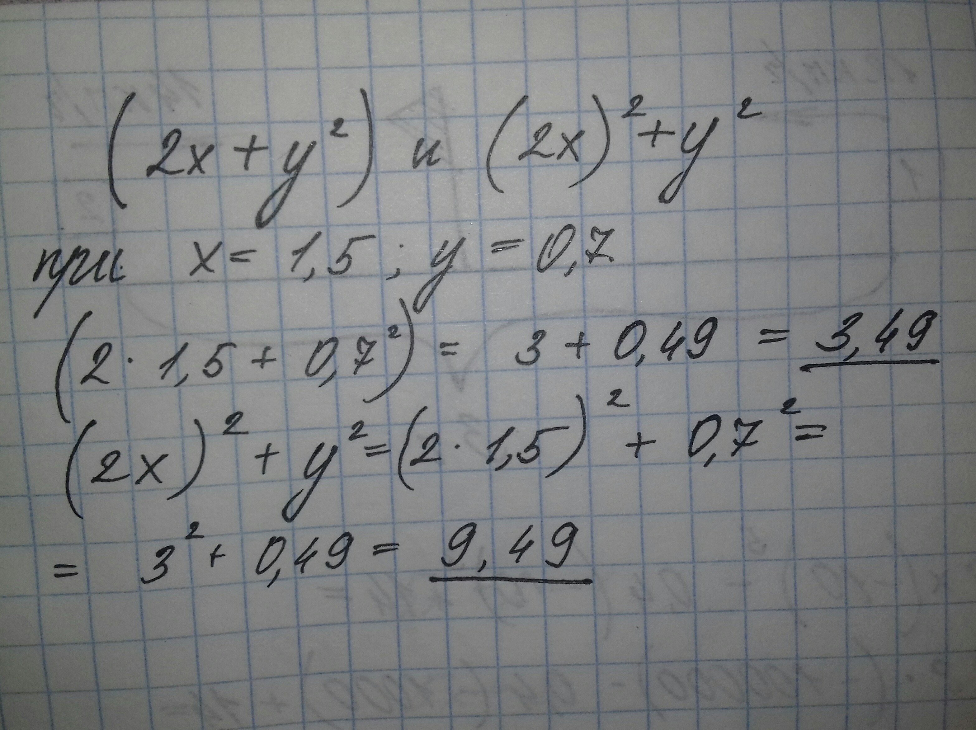 (2x+y в квадрате) и (2x) в квадрате + y в квадрате при x=1,5 y =0,7