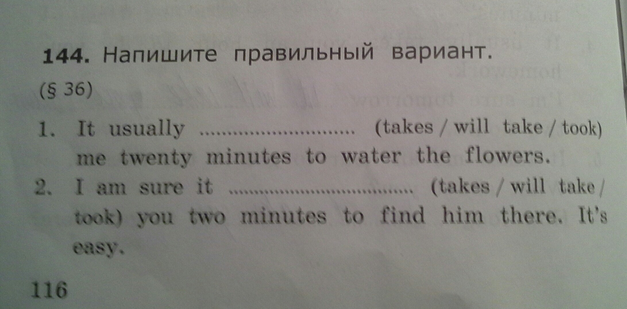 1) takes [Обычно, у меня уходит 20 минут, чтобы полить цветы]