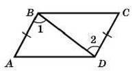 На рисунке АВ = CD, ∠1=∠2, AD = 7 см, ∠C=34°. Найдите отрезок ВС и угол А.
