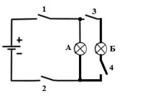 При замыкании ключа 1 и ключа 3 одновременно лампочка А