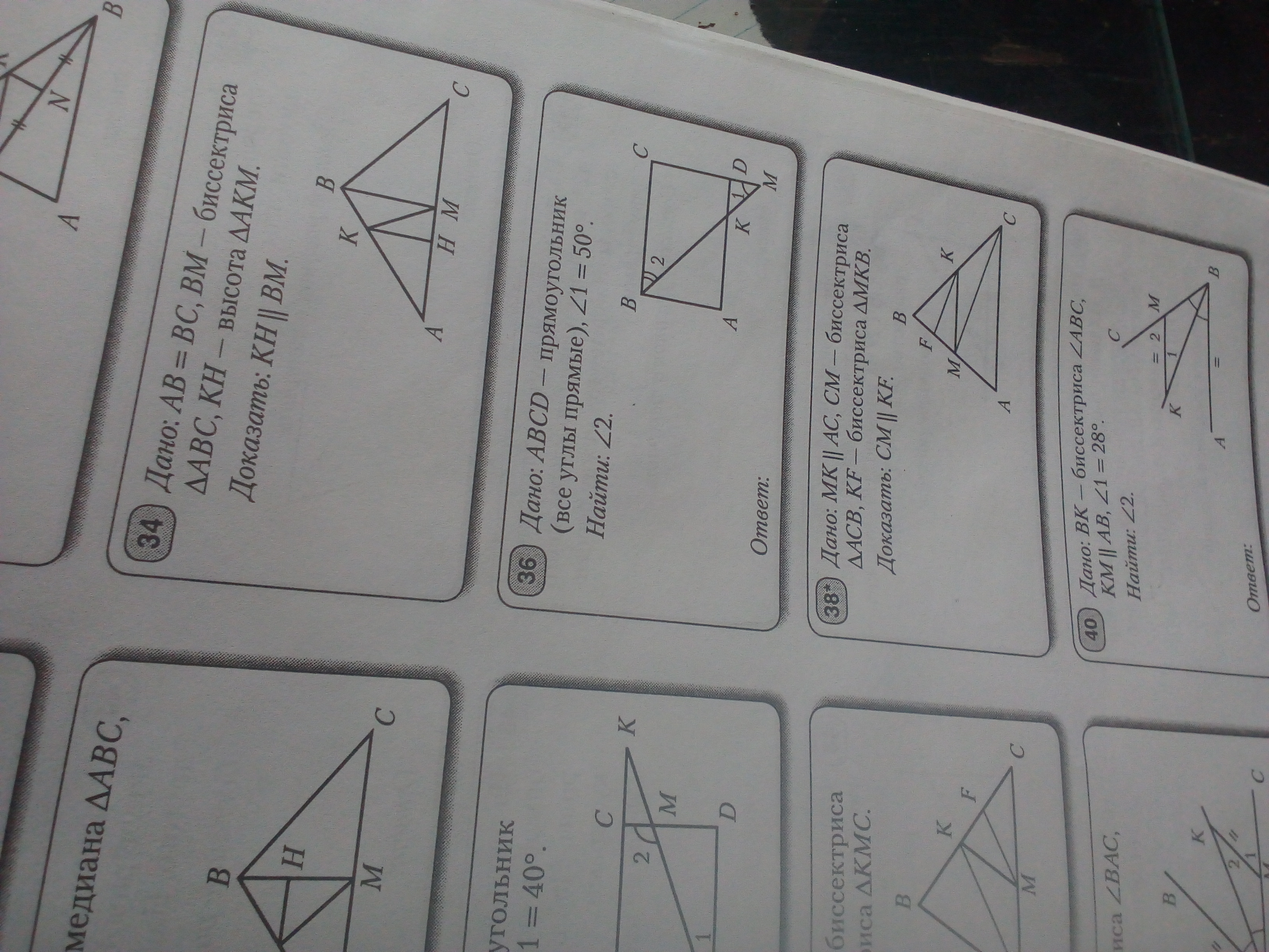 так как абцд - прямоугольник,значит угол ц = 90градусов и следовательно этот треугольник равнобедренный следовательно угол б = углу ц , а угол ц равен 50градусов.