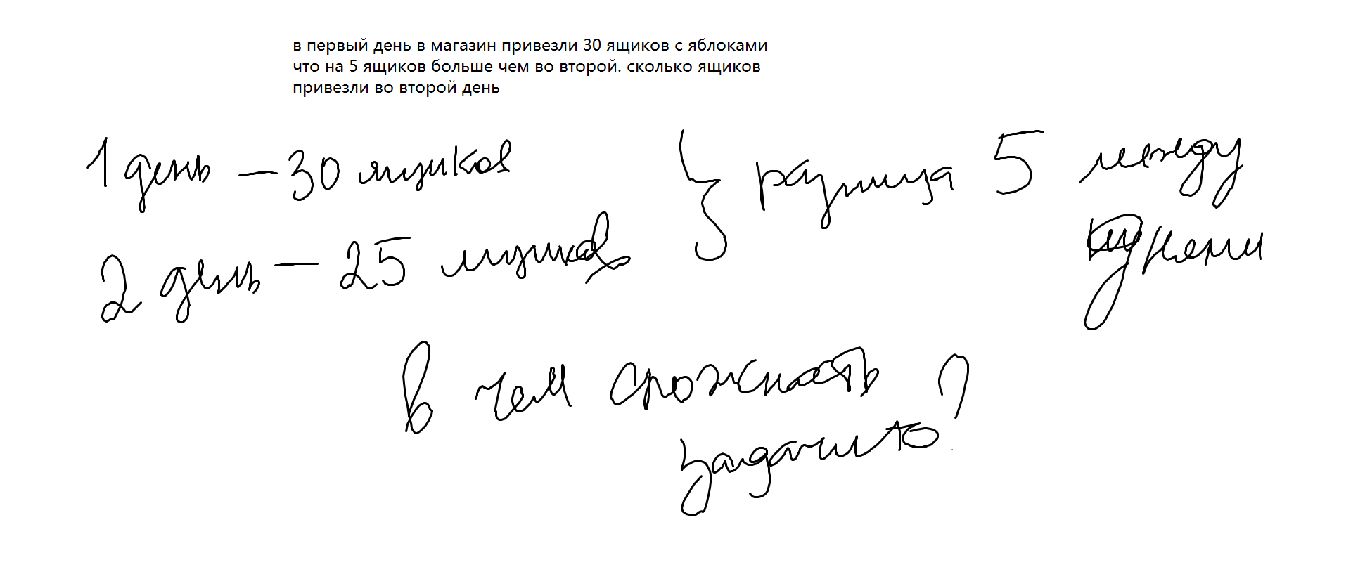 в первый день в магазин привезли 30 ящиков с яблоками что на 5 ящиков больше чем во второй. сколько ящиков привезли во второй день