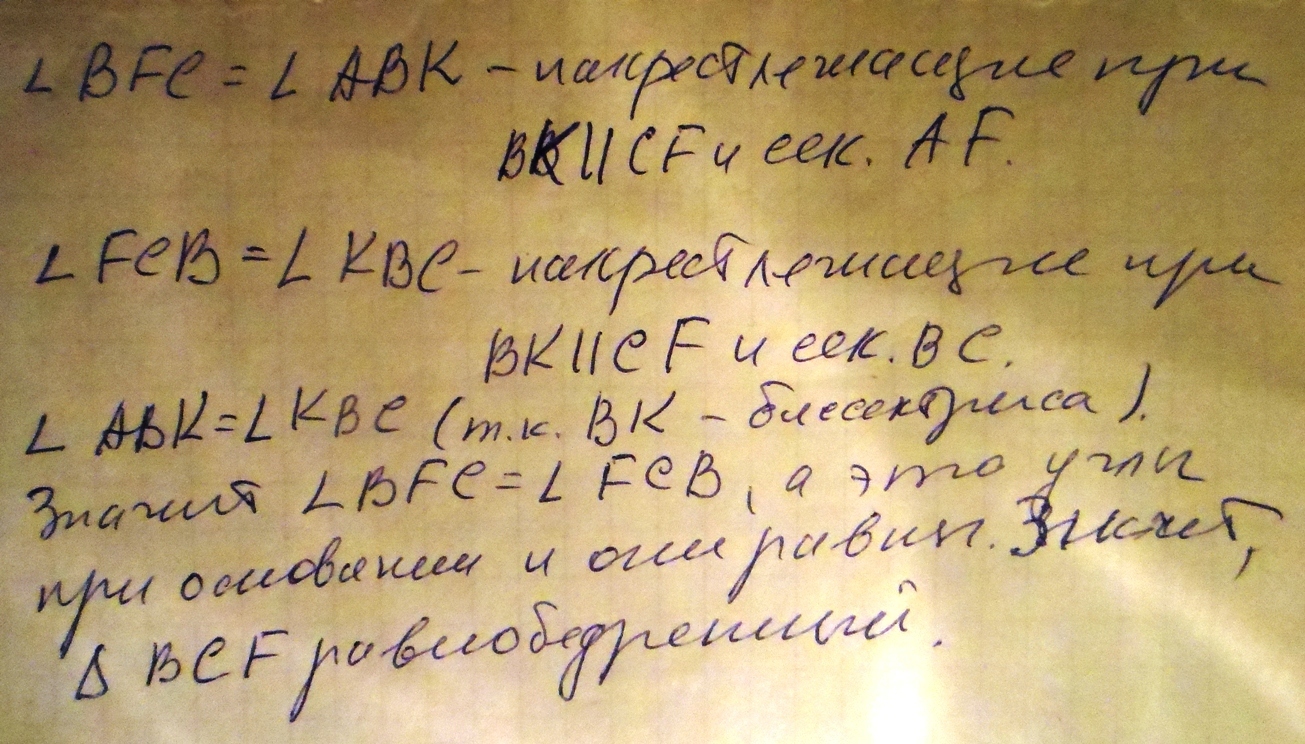 Значит ∠BFC=∠FCB, а это углы при основании, т.е ΔBCF равнобедренный