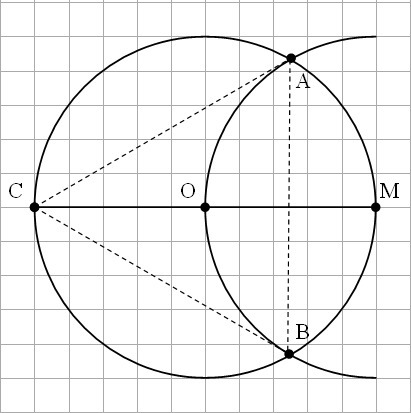 точке М. Пересечения с окружностью образованные данной дугой в точках А и В вместе с точкой С поделят окружность на три равные части.