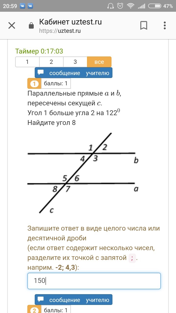 Но если подумать, то 8 и 2 - это накрест лежащие углы, поэтому 8 = 58