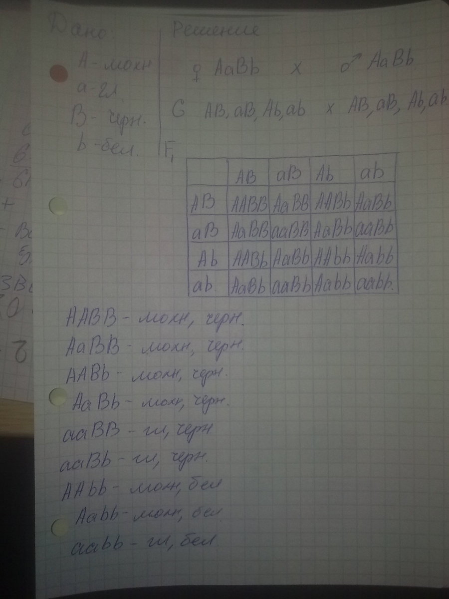 У морских свинок мохнатая шерсть доминирует над гладкой. Черная над белой. Черные свинки ,мохнатые скрещивались между собой. Получился- 1 мохнатый,белый, 2-гладких,черных. (генотипы родителей и f1)