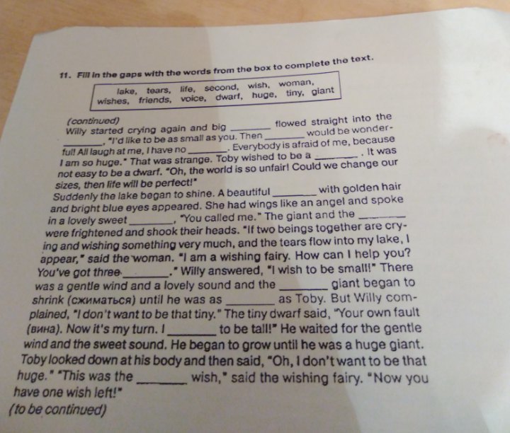 текла прямо в путь, снова начал плакать, и большой был бы удивлен: «Я хотел бы быть умным, как ты. Тогда я, потому что все боятся, что я смеюсь надо мной, хотел, чтобы он был огромным». Это было странно, Тоби. Не могли бы мы изменить нашу нелегкую форму: «О, мир настолько несправедлив, что Rre wfll будет прекрасными золотыми волосами. Внезапно озеро стало сиять. Появились красивые и светлые голубые глаза. у тебя были крылья, как ангел в милой сладкой. Ты позвонил мне. Гигант и одежда были напуганы и покачали головами. два существа вместе плачут и очень желают чего-то очень большого, в моем озере льются тепли, я появляюсь, - сказала женщина, - желающая фея. Как я могу вам помочь? У вас есть три Вилли, ответил: «Я желаю быть маленьким! Был нежный ветер и прекрасный звук, и гигант начал сокращаться (coon MaTbcA), пока он не был таким же, как Тоби. Но Вилли согласился, не хочу быть таким крошечным. Крошечный карлик сказал: «Твоя вина» (аура). Сейчас моя очередь. Я был высоким! »Он ждал нежного ветра и сладкого звука. Он начал расти, пока не стал огромным гигантом. Тоби посмотрел на свое тело, а затем сказал:« О, Idon'twant, чтобы быть таким огромным ». Это было желание, - сказала желающая фея. «Теперь у вас есть одно желание!» (быть подкрепленным)