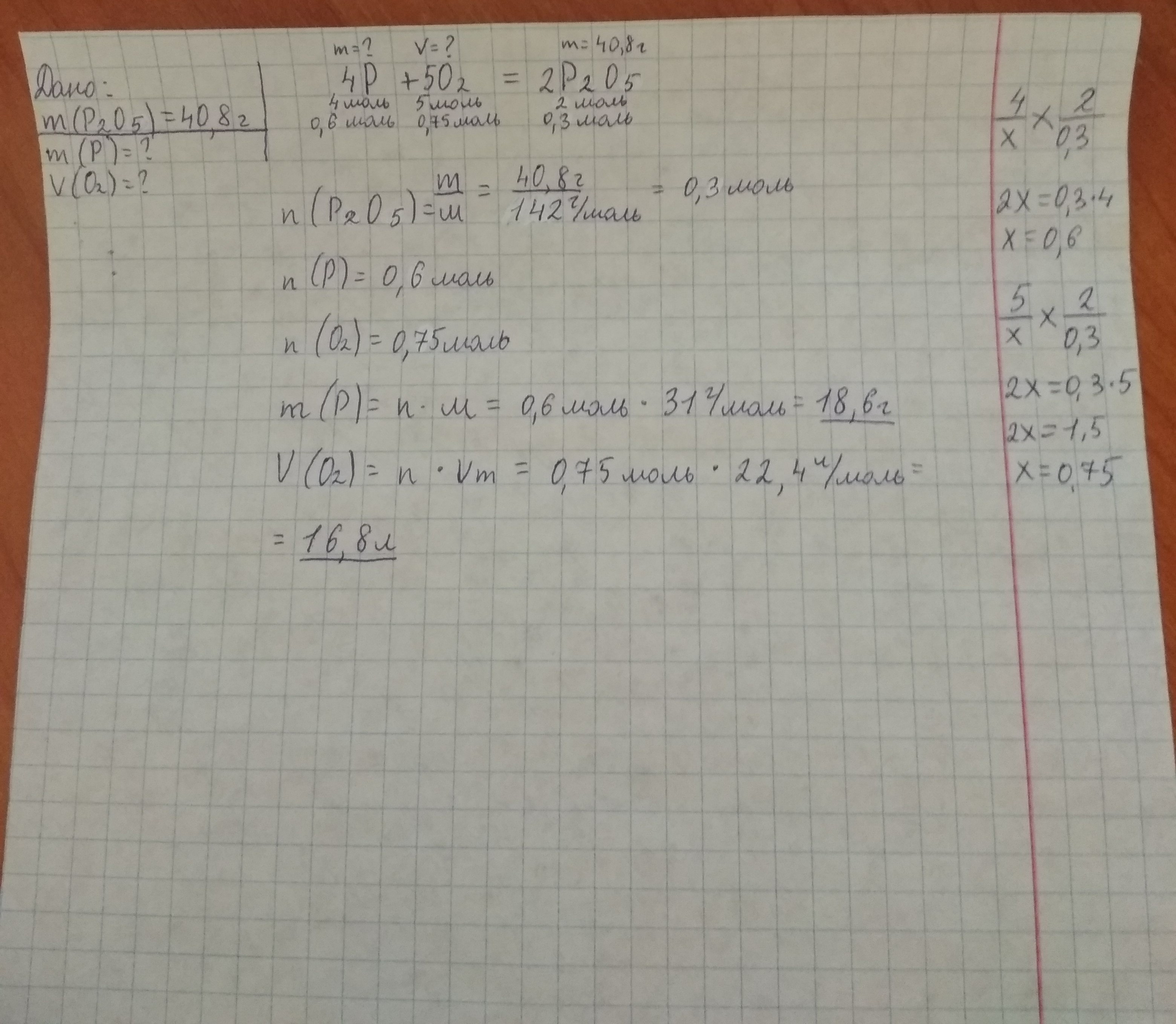 Вычислите массу фосфора и объем кислорода( н. у) который потребуется для получения 40,8 г оксида фосфора (V)