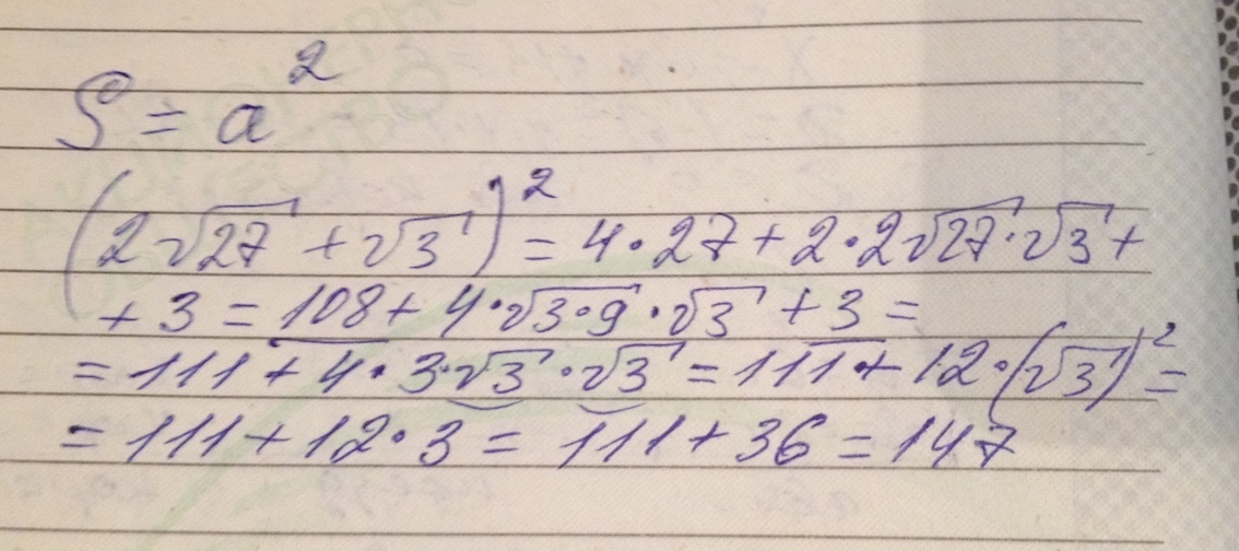 Площадь квадрата равна его стороне, возведенной во вторую степень.