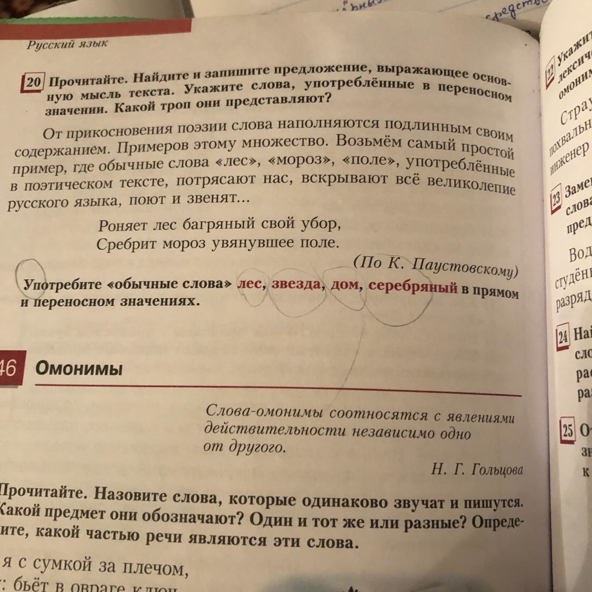 Осенний лес- лес рук(в классе), звезда на небе- звезда на сцене, родной дом- сумасшедший дом(хаос), серебряный браслет- серебряные звёзды.