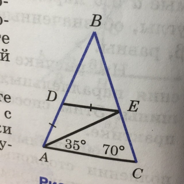 ПОМОЩЬ СРОЧНОООО ДАЮ МНОГО БАЛЛОВ!!! На рисунке 109 AB=BC, AD=DE, угол С=70градусам, угол ЕАС = 35 градусам. Докажите, что DE||AC