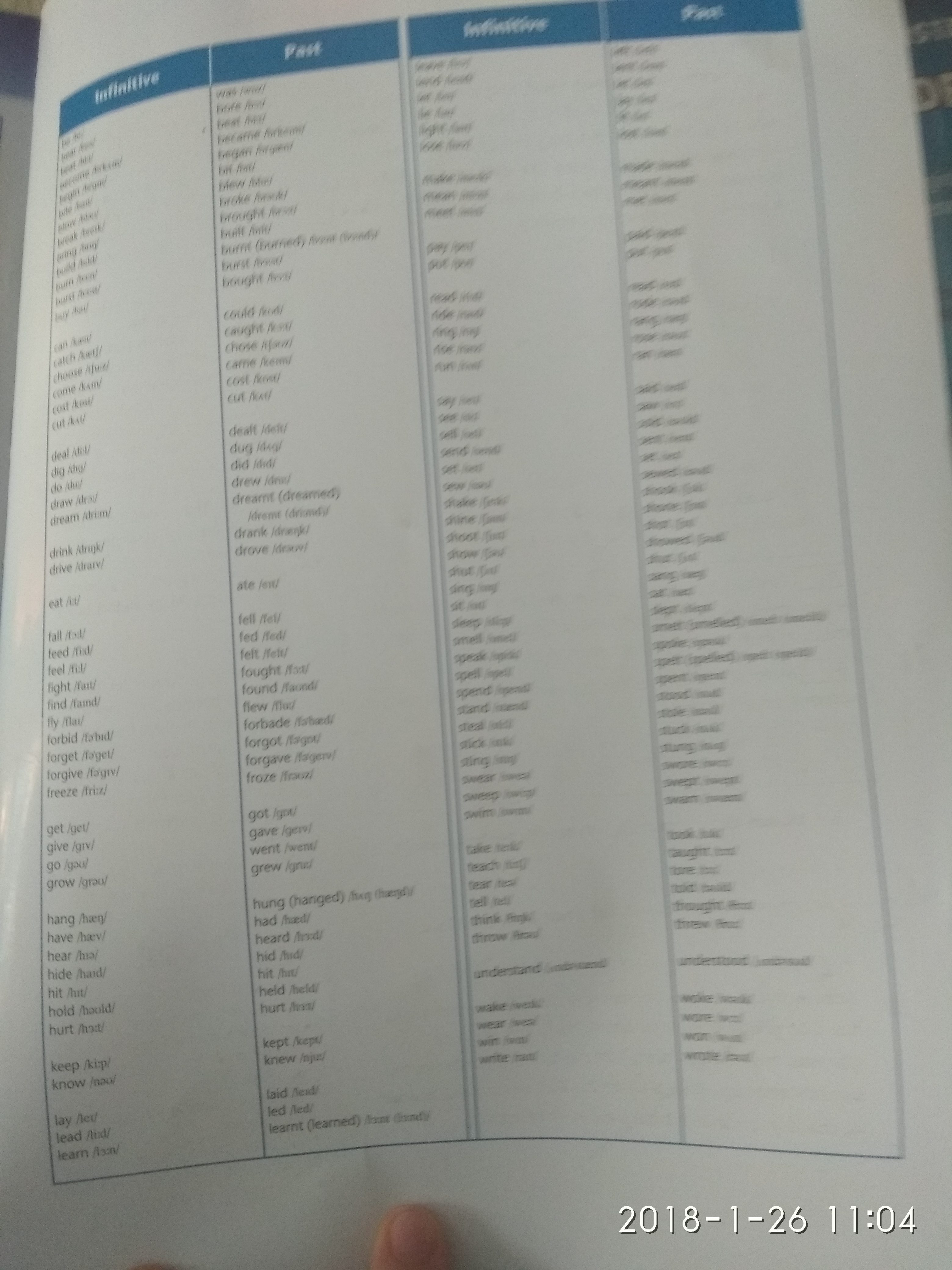 had, came, wore, drank, took, wrote, did, ate, spended, bought, singed.