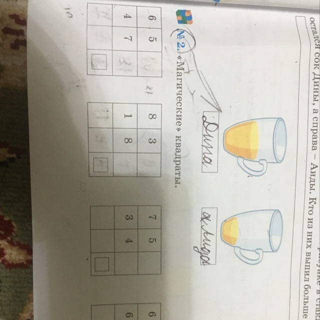 решают магические квадраты способом подбора чисел. Если правильно подобрать число, тогда все линии по горизонтали вертикали и диагонали будут равны одному и тому же числу