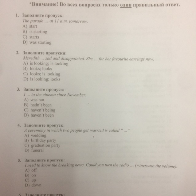 1) C, 2) C, 3) D, 4) A, 5) B.