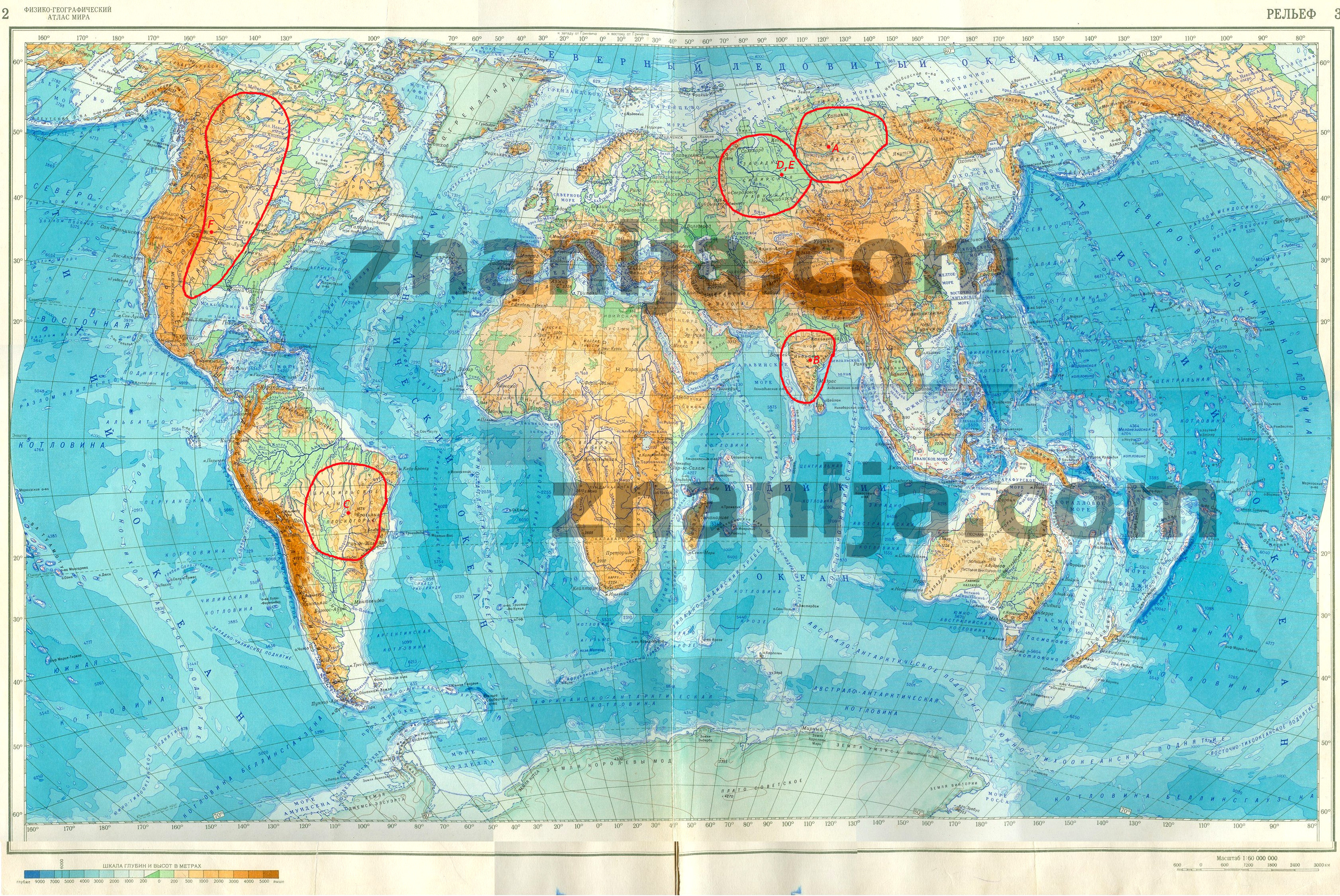 F (40 с.ш. 104 з.д.) - Великие равнины (точка F находится в штате Колорадо, США, Северная Америка). Тем не менее, Великие равнины располагаются в Канаде и США и в направлении с севера на юг делятся на такие основные зоны, как плато Миссури, центральные Высокие равнины, плато Льяно-Эстакадо и Эдуардс.