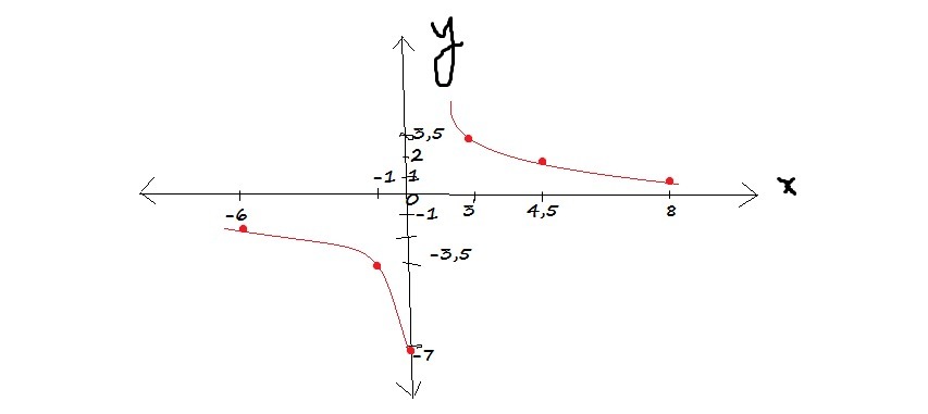Таблица на 6 значений, чтобы было проще рисовать график (ветки гиперболы должны быть плавными)