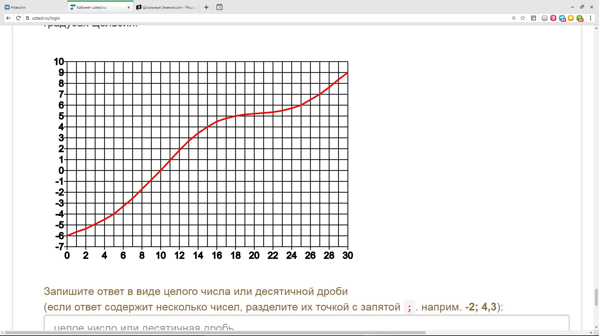 На рисунке изображено изменение среднесуточной температуре в Москве в апреле. На горизонтальной оси отмечен день месяца, на вертикальной оси - температура в градусах Цельсия.