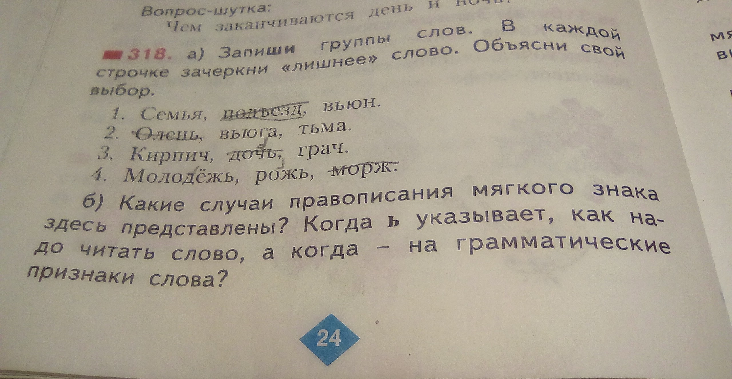 1)Семья потому что если убрать мягкий знак, то получится другое слово"семя".