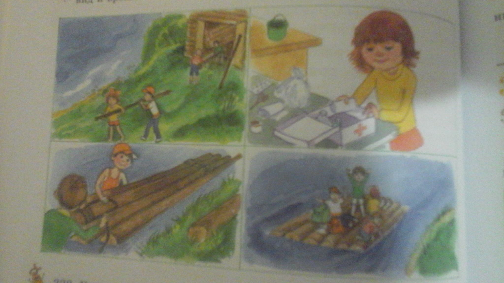 Дети решили построить плотину. Они начали подготавливать материал. Сначала нашли брёвна, и начали скреплять их верёвками. У них получилось!!!! Потом они набрали еды, взяли интересных настольных игр и поплыли по реке.