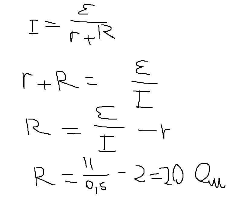 Ответ: 20 Ом Формула и объяснение на картинке. Используется формула для силы тока на полной цепи