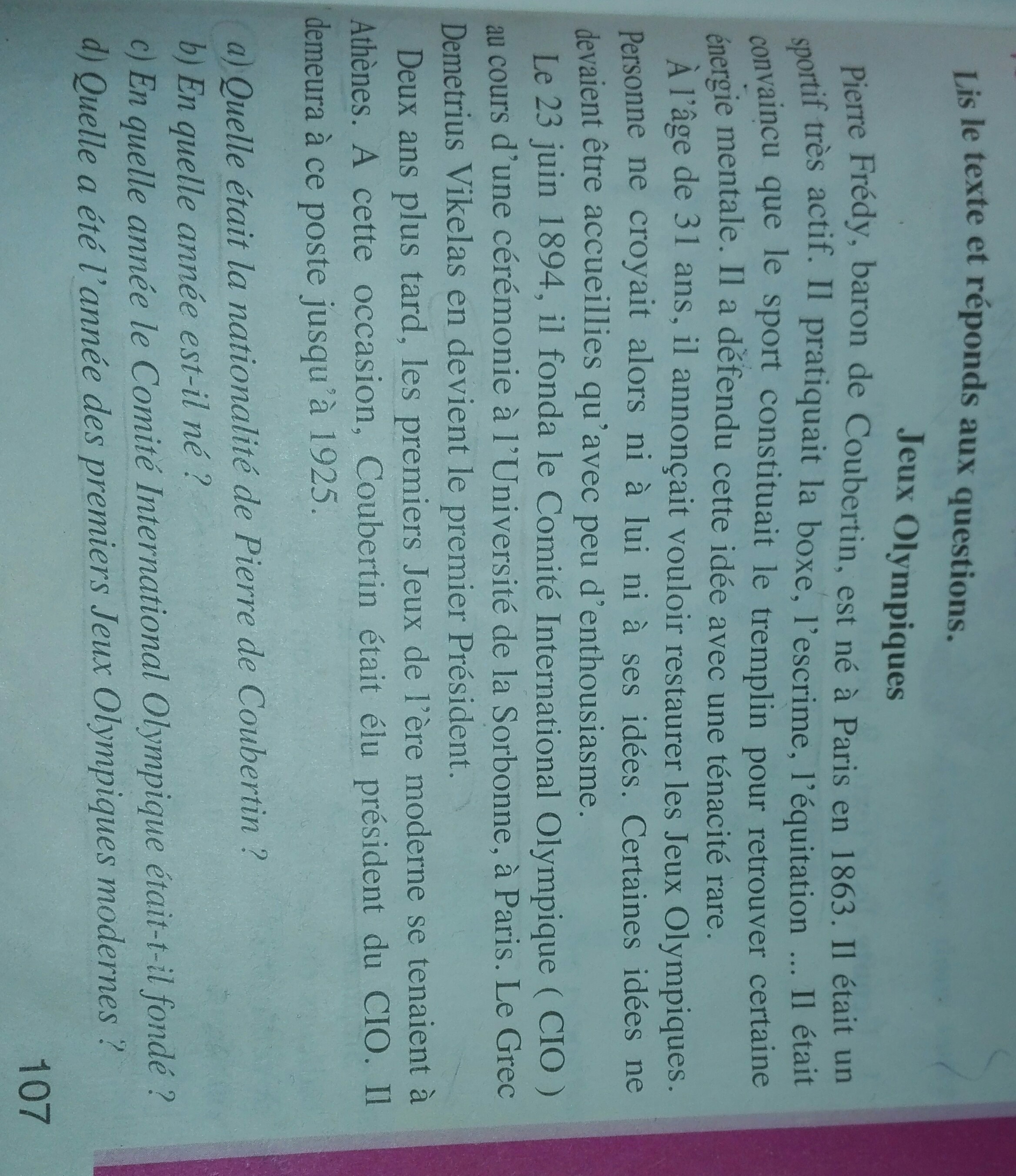 c- Le Comite International Olympique est fondé le 23 Juin 1894