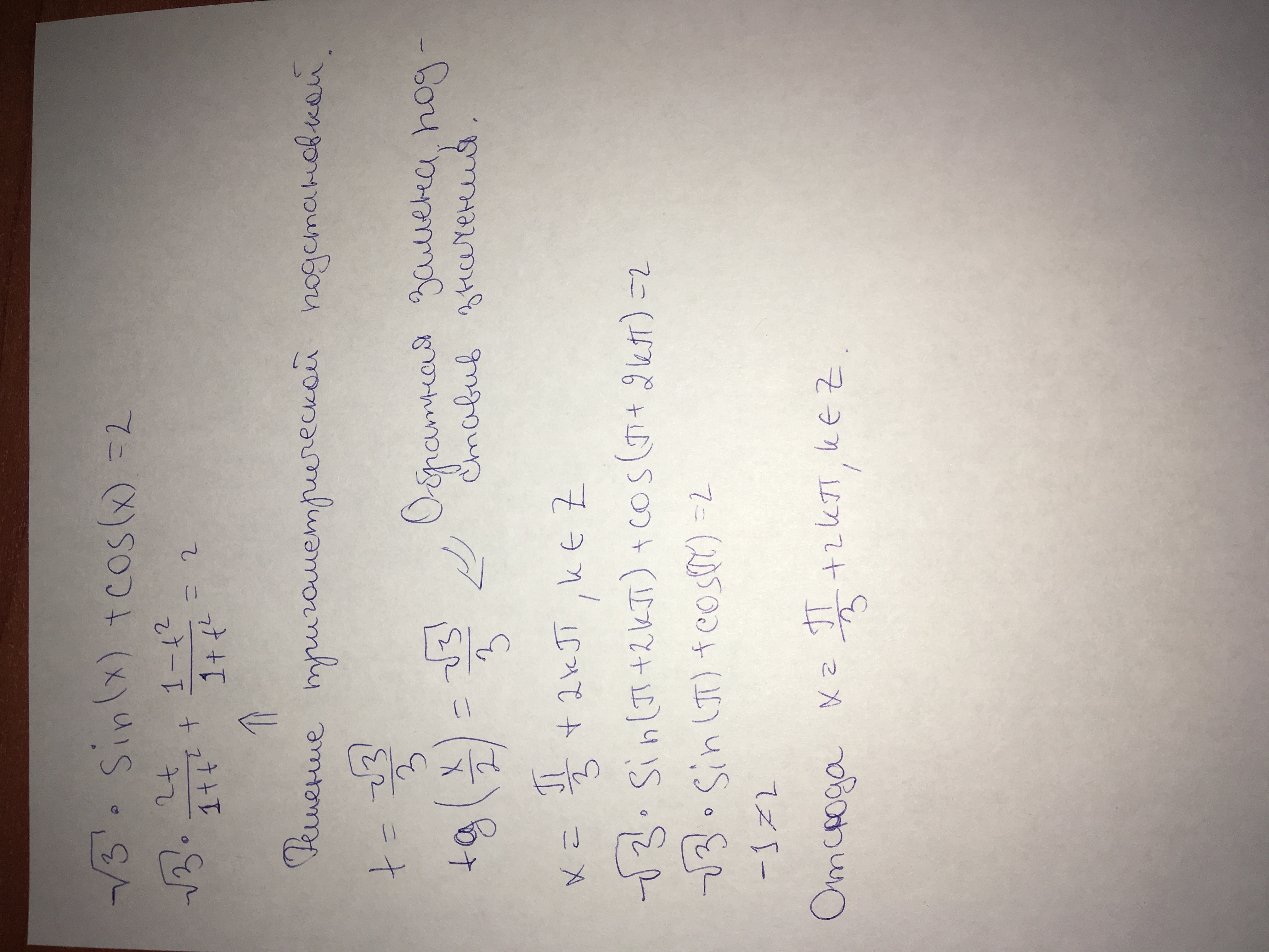 Во второй строке мы упростили выражение, используя универсальную тригонометрическую подстановку, то есть мы представили sin(x) и cos(x) как
