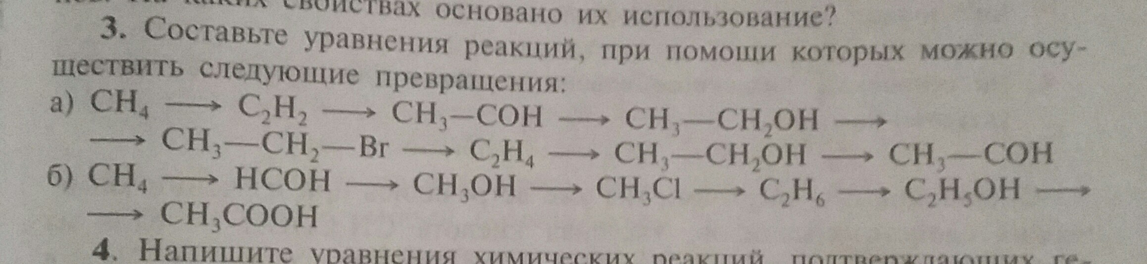 для составления уравнений надо знать химические свойства классов органических веществ.