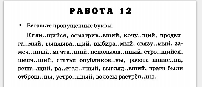 Клянущийся, осматривавший, кочующий, продвигаемый, выплывающий, выбираемый, связуемый, замеченный, мечтающий, использованный, строящийся, шепчущий, статьи опубликованы, работа написана, решающий, расстеленный, выглядевший, враги были отброшены, устроенный, волосы растрёпаны.