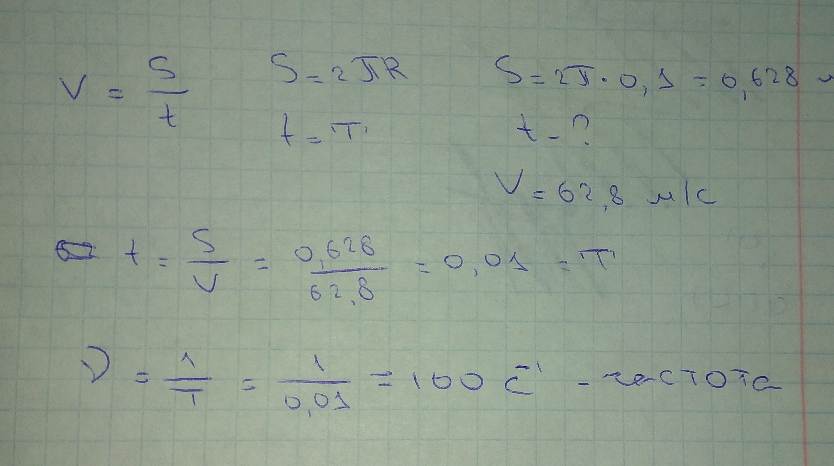 V = 62,8 м/с/(2 × 3,14 × 0,1 м) = 100 Гц