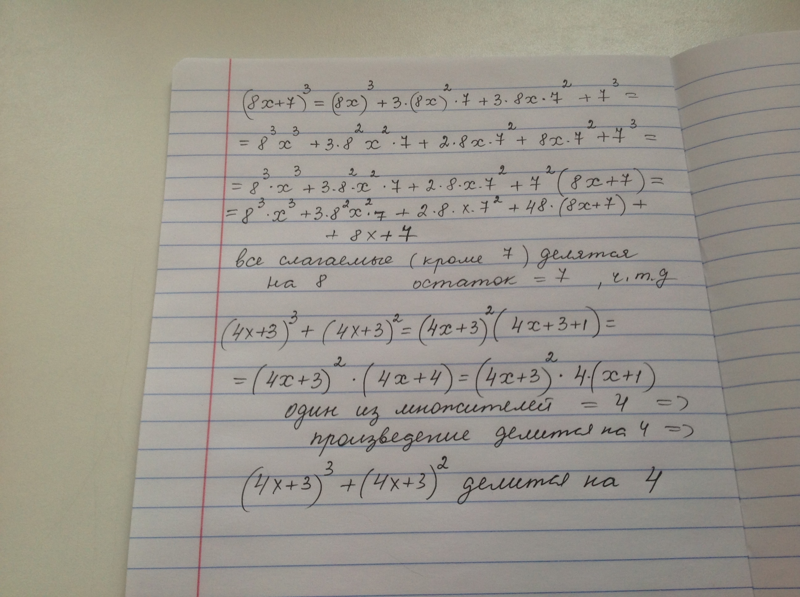 a) Целое число при делении на 8 дает в остатке 7. Докажите, что куб этого числа при