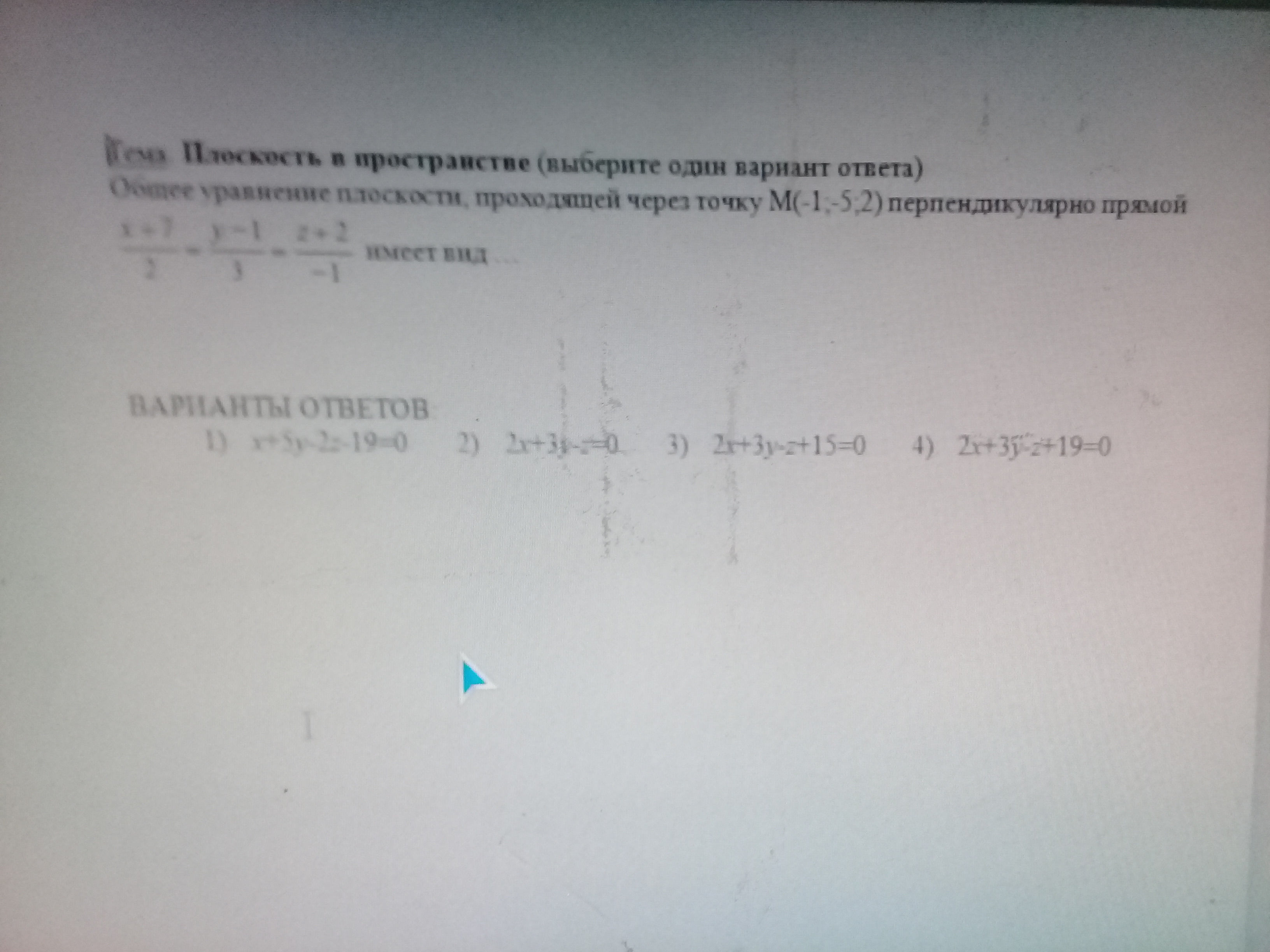 Плоскость в пространстве общее Уравнение плоскости проходящей через точку М(-1;-5;2) перпендикулярно прямой x+7/2=y-1/3=z+2/-1