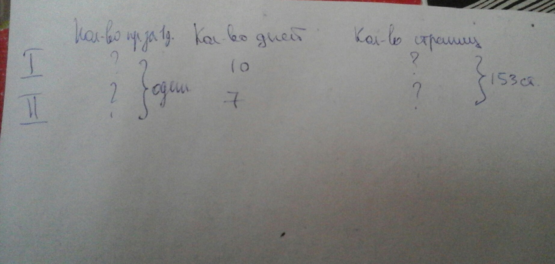 как составить краткую запись к задаче в двух книгах 153 страницы. Первую книгу мальчик читал 10 дней .А вторую 7 дней, прочитывая каждый день одинаковое количичиство страниц.Сколько страниц в каждой книге ?