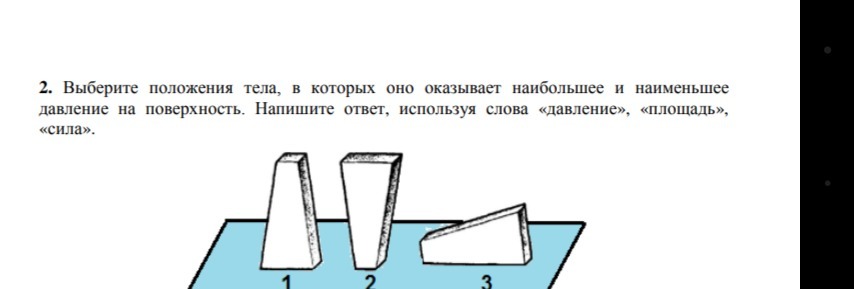 Фигура под цифрой 3 оказывает наибольшее давление на стол так как площадь соприкосновения с поверхностью самая брльшач