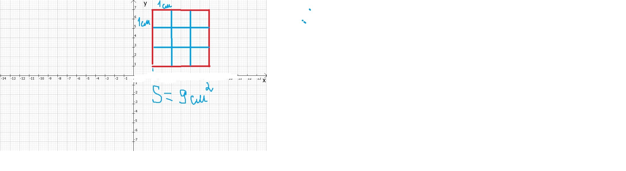 квадрат начертила внизу.Площадь каждого маленького квадрата 1см²(у них синие стороны).Всего квадратиков 9,значит и площадь равна 9см²