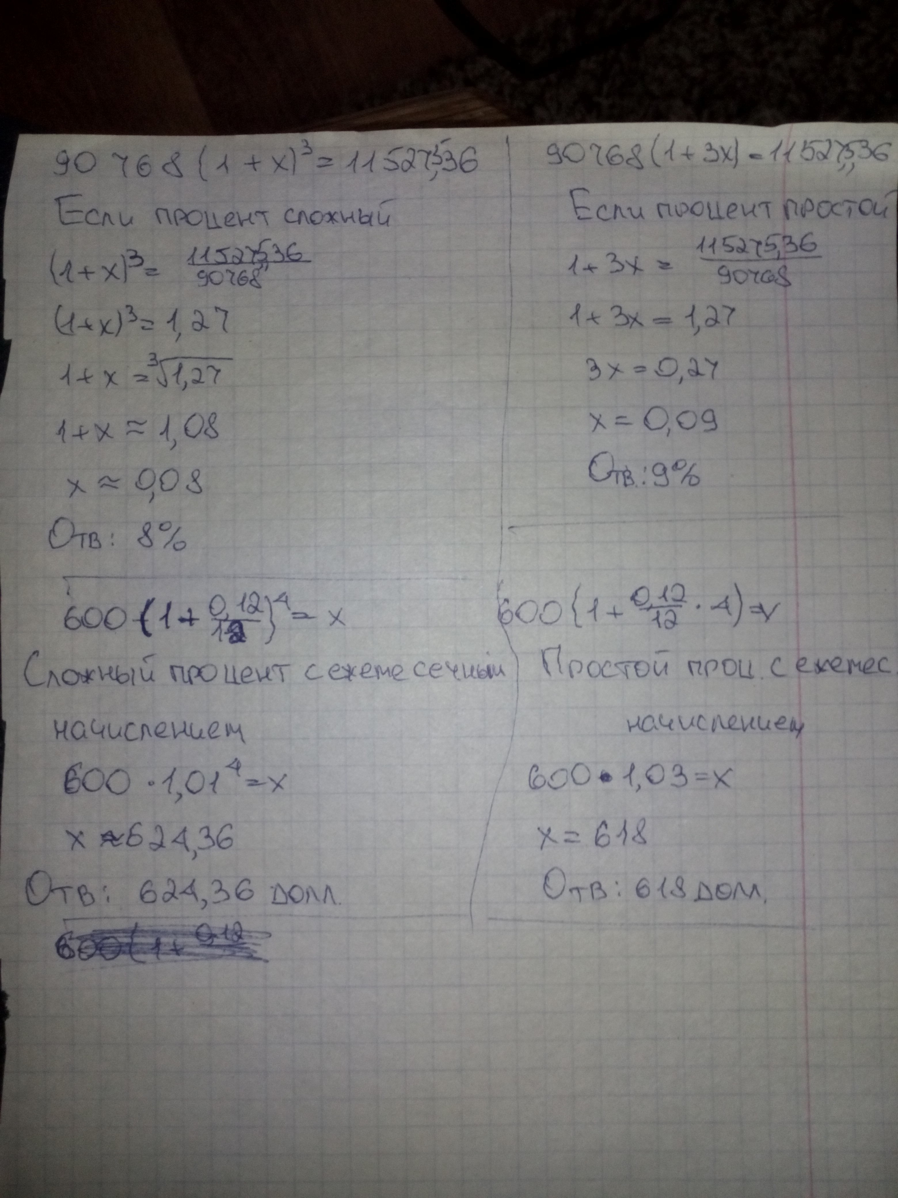 1.Фирме выдали кредит 90768 долларов на три года. После трех лет фирма вернула 115275, 36 долларов. Какая была процентная ставка у кредита?