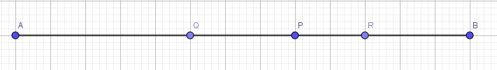 На отрезке AB длины 2018 отмечены точки P, Q и R, таким образом, что AP = QB = 1111,