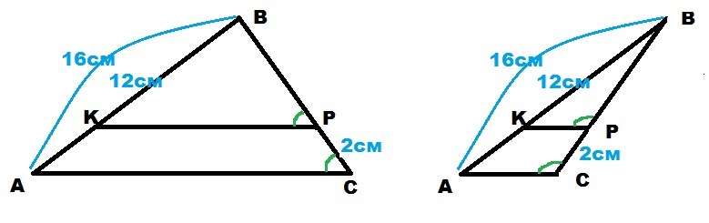 KP ║ AC AB=16 см, BK=12 см и PC=2 см.