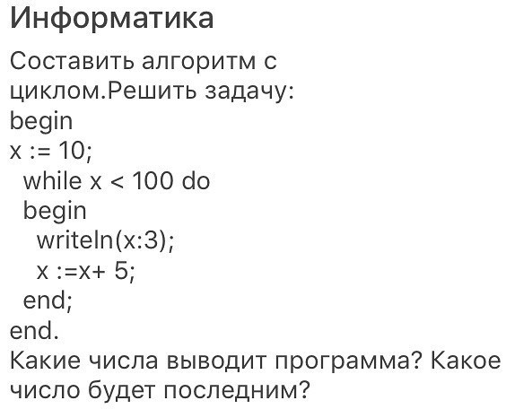 программа выводит числа. эти числа создаются постоянным прибавлением 5. изначальнное число 10. x:3 означает,что для вывода будет оставлено 3 знака. те если выводить число 10, то перед ним будет "пробел"