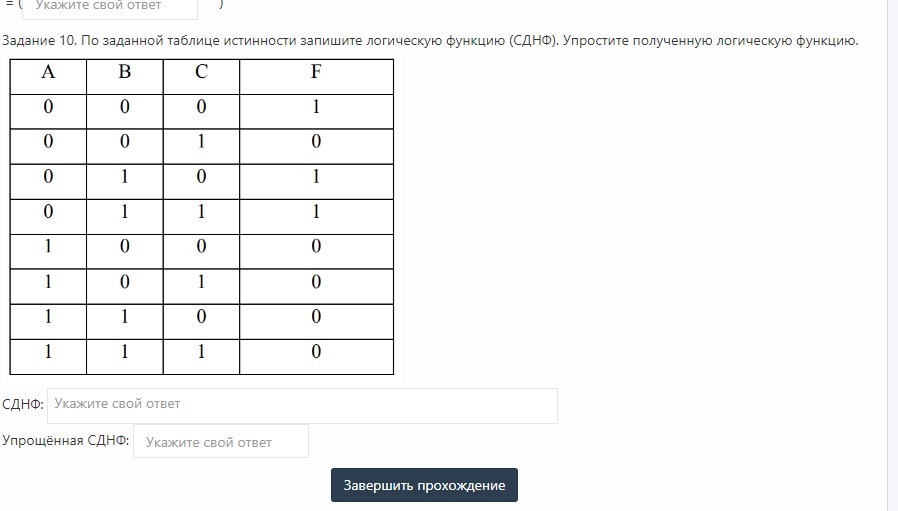 По заданной таблице истинности запишите логическую функцию (СДНФ). Упростите полученную логическую функцию.