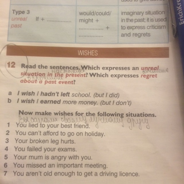 4. I wish I had't failed my exam (I wish I had passed my exam)