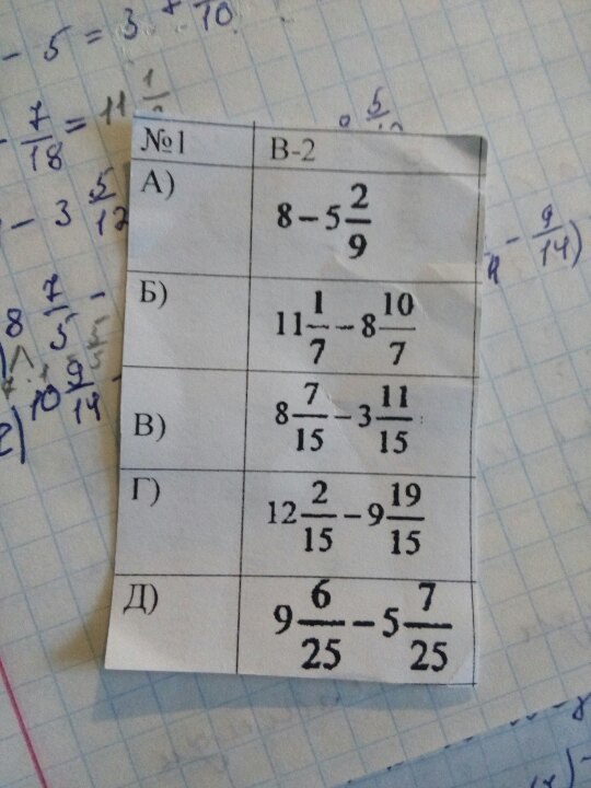 д) 9--- - 5--- = 8---- - 5--- = 3----