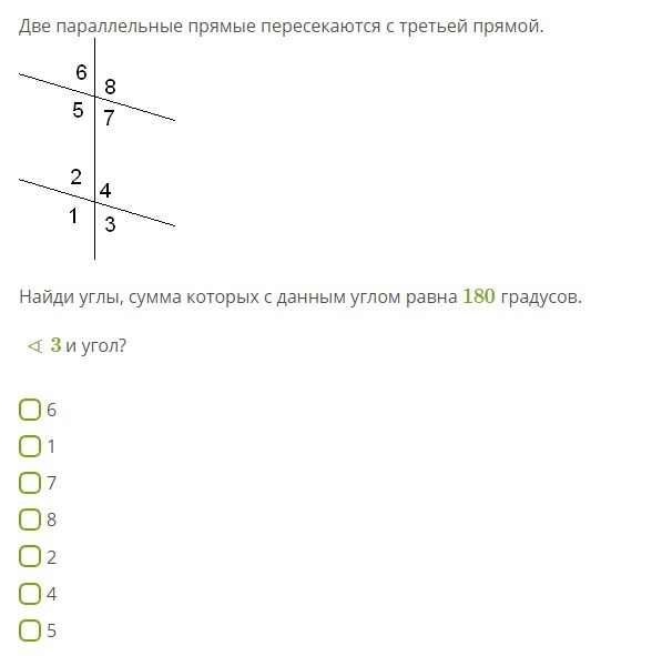 Ответ: ∠1; ∠4; ∠5; ∠8