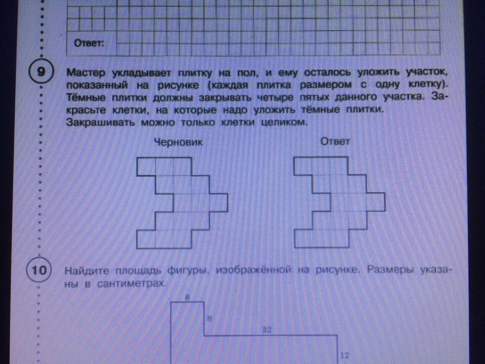 данного участка. Приведите пример укладки тёмных плиток: закрасьте соответствующие