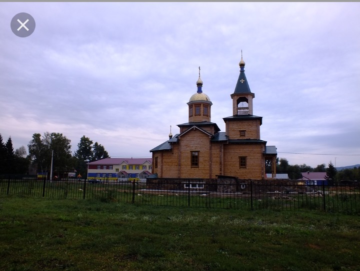 На картине изображено здание.Оно похоже на церквушку или колокольню.Само здание красноватого оттенка с куполом и серой крышей.Вокруг здания стоит чёрный забор,растёт зелень,лес,ходят пасмурные облака...