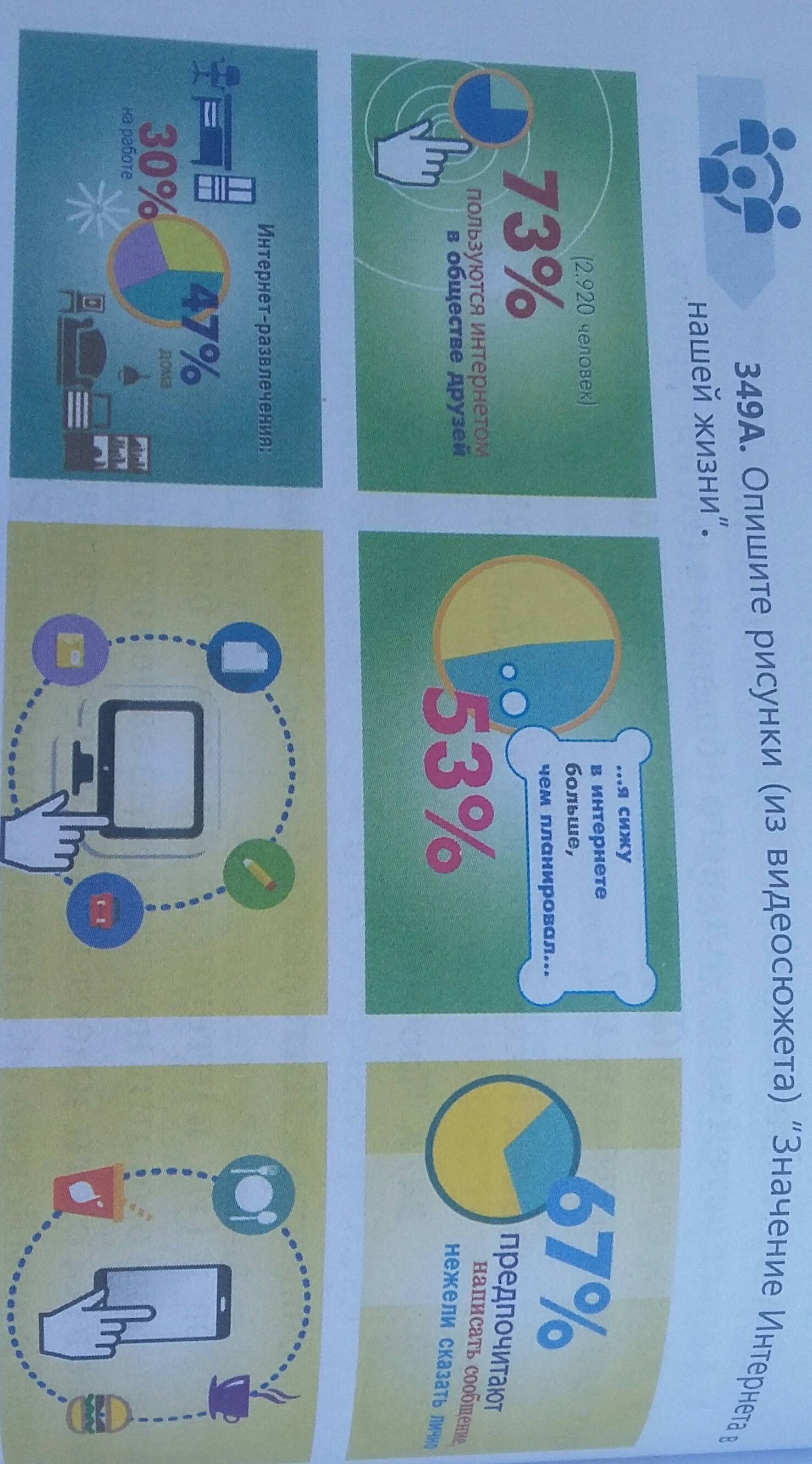 Интернет занимает большую часть нашей жизни на пример:Работа,Развлечение,Отдых,Разговор
